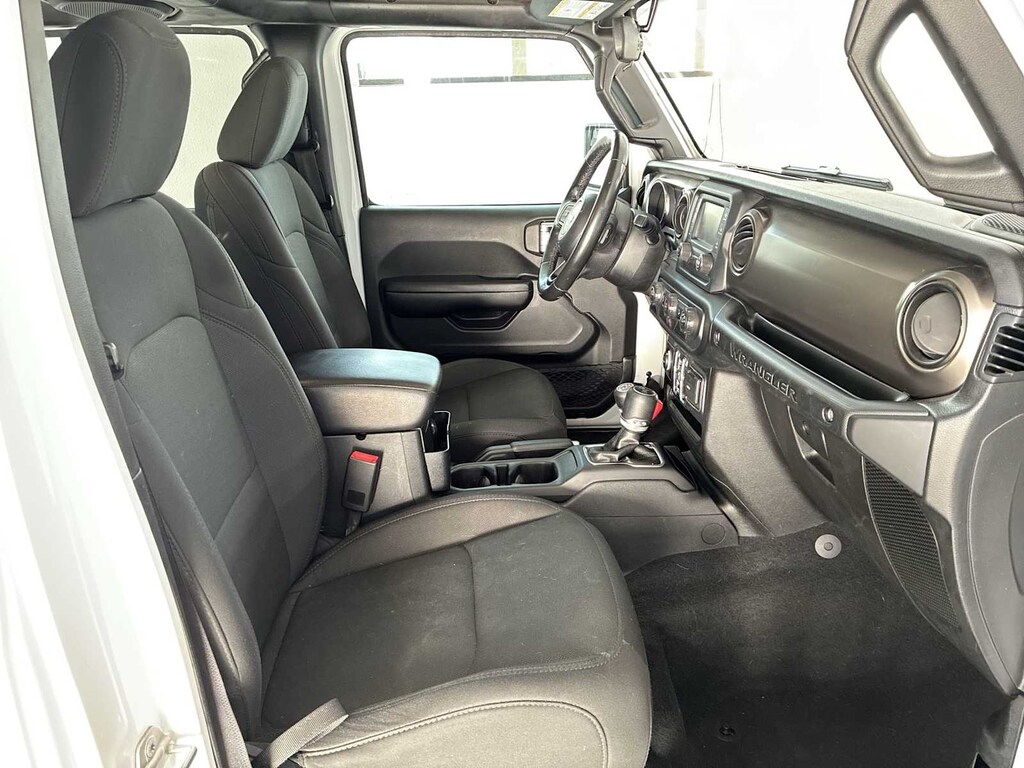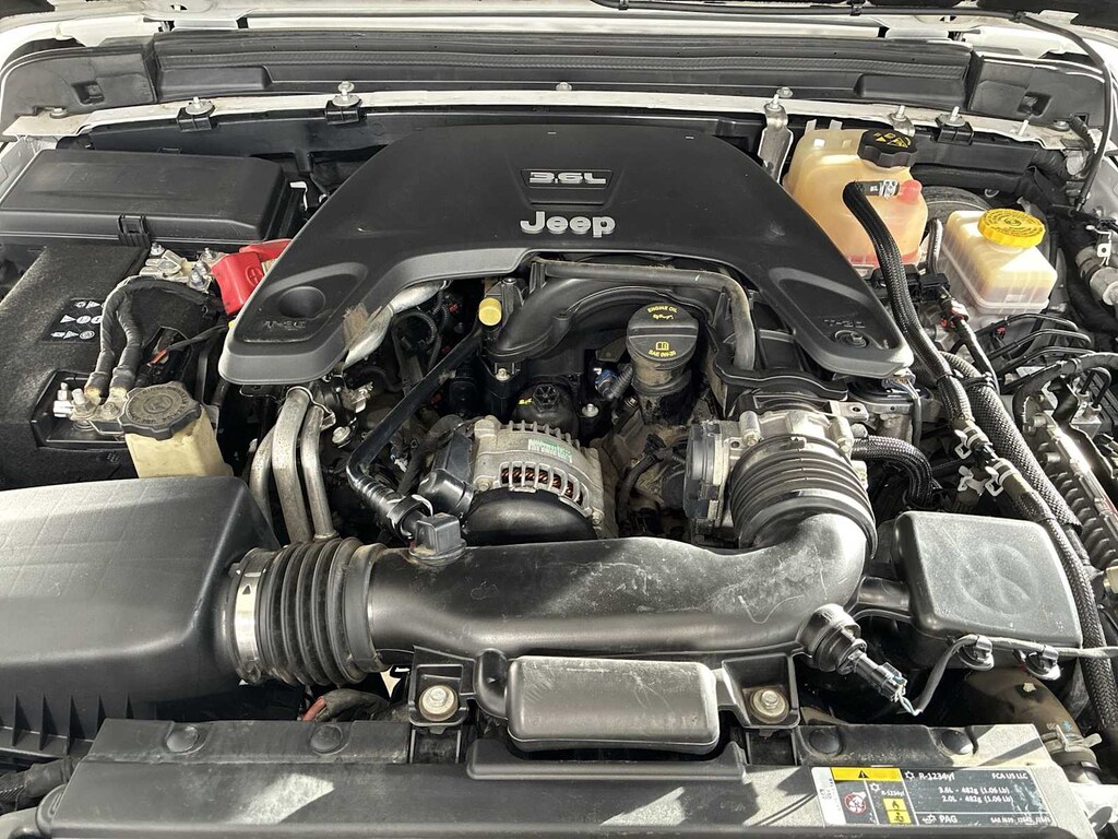 QUICK ORDER PACKAGE 24S SPORT S Engine: 3.6L V6 24V VVT UPG I w/ESS, Transmission: 8-Speed Automatic (850RE), Front 1-Touch Down Power Windows, Speed Sensitive Power Locks, Power Heated Mirrors, Automatic Headlamps, Leather Wrapped Steering Wheel, Security Alarm, Remote Keyless Entry, Sun Visors w/Illuminated Vanity Mirrors, TRANSMISSION: 8-SPEED AUTOMATIC (850RE) TIP Start, Dana M200 Rear Axle, Hill Descent Control, BLACK 3-PIECE HARD TOP Freedom Panel Storage Bag, Rear Window Defroster, Rear Window Wiper/Washer, No Soft Top, ENGINE: 3.6L V6 24V VVT UPG I W/ESS (STD). Jeep Sport S with Bright White Clearcoat exterior and Black interior features a V6 Cylinder Engine with 285 HP at 6400 RPM*.