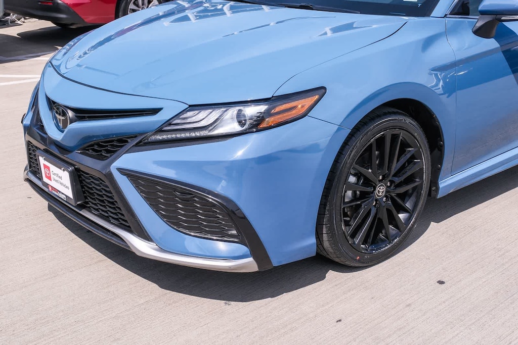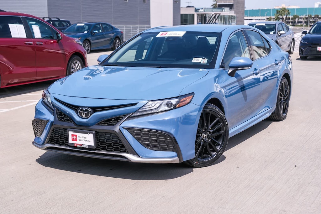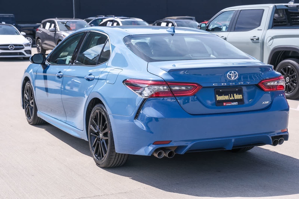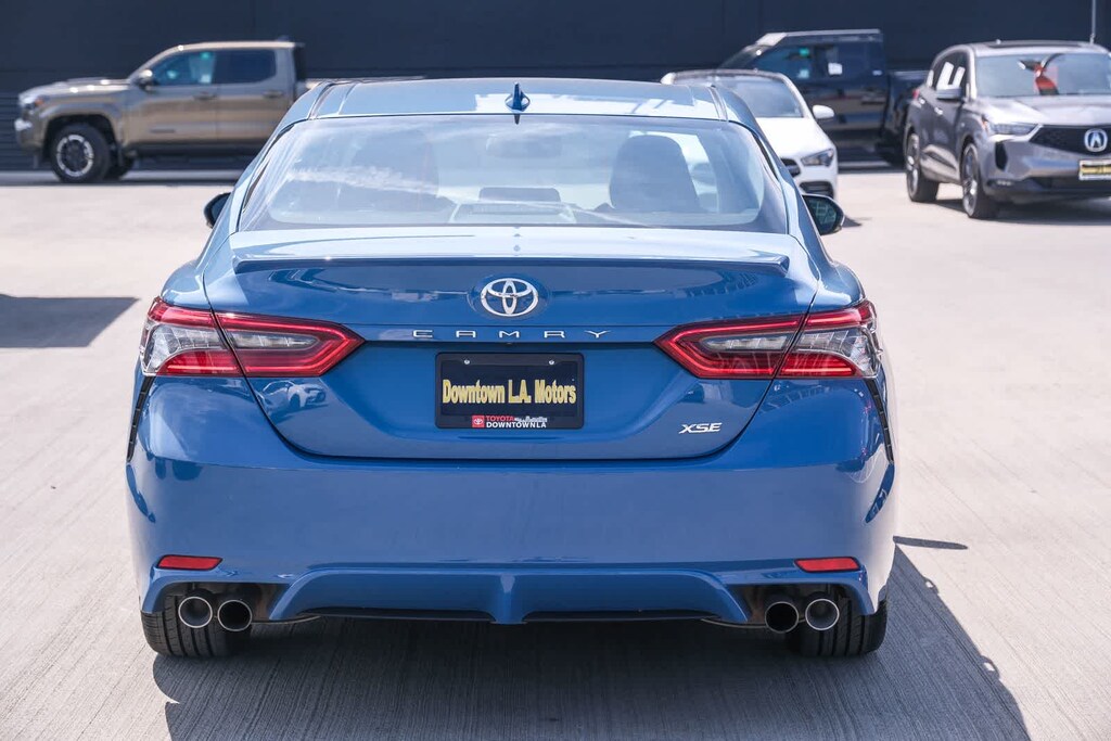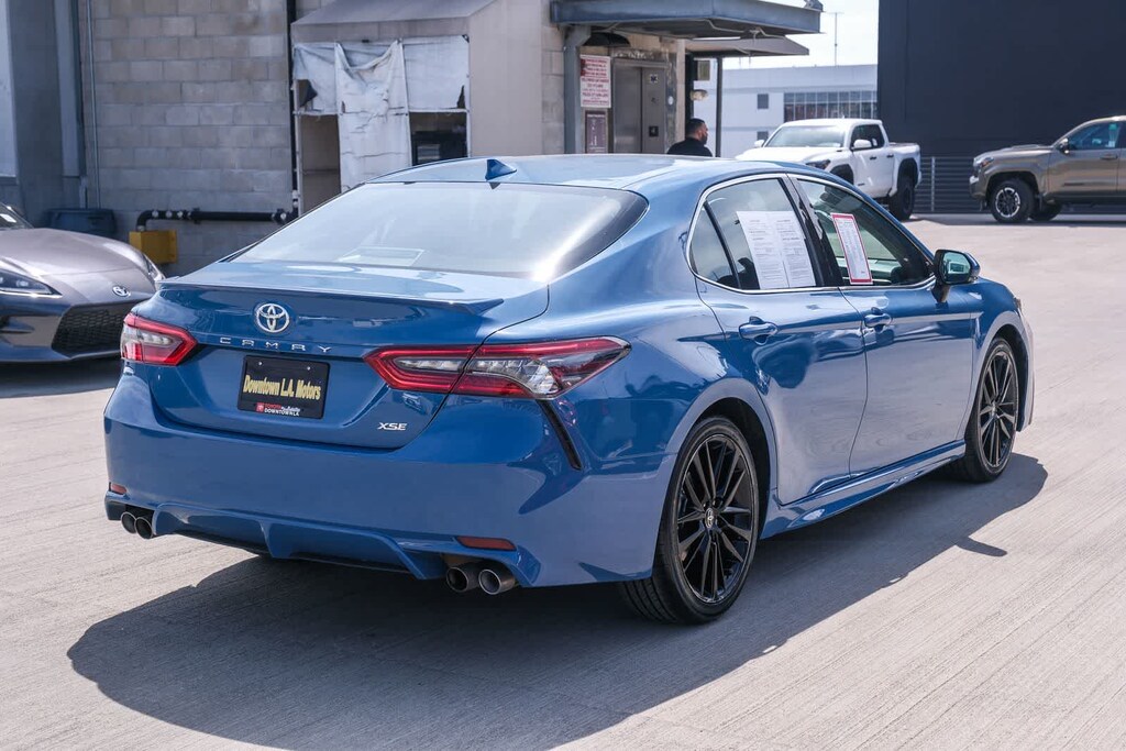 WELCOME TO TOYOTA OF DOWNTOWN LA... Certified. CARFAX One-Owner. 2023 Toyota Camry XSE Cavalry Blue FWD 8-Speed Automatic 2.5L I4 DOHC 16V Black w/Perforated Leather Seat Trim, 6 Speakers, Apple CarPlay/Android Auto, Auto-dimming Rear-View mirror, Automatic temperature control, Brake assist, Delay-off headlights, Electronic Stability Control, Exterior Parking Camera Rear, Front dual zone A/C, Fully automatic headlights, Leather steering wheel, Multi-Stage Heated Front Bucket Seats, Perforated Leather Seat Trim, Remote keyless entry, Speed control, Speed-sensing steering, Spoiler, Traction control, Turn signal indicator mirrors, Wheels: 8.0J x 19 Alloy. 27/38 City/Highway MPG