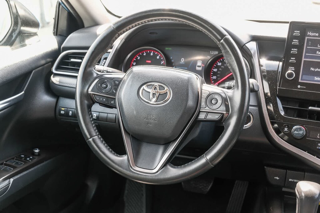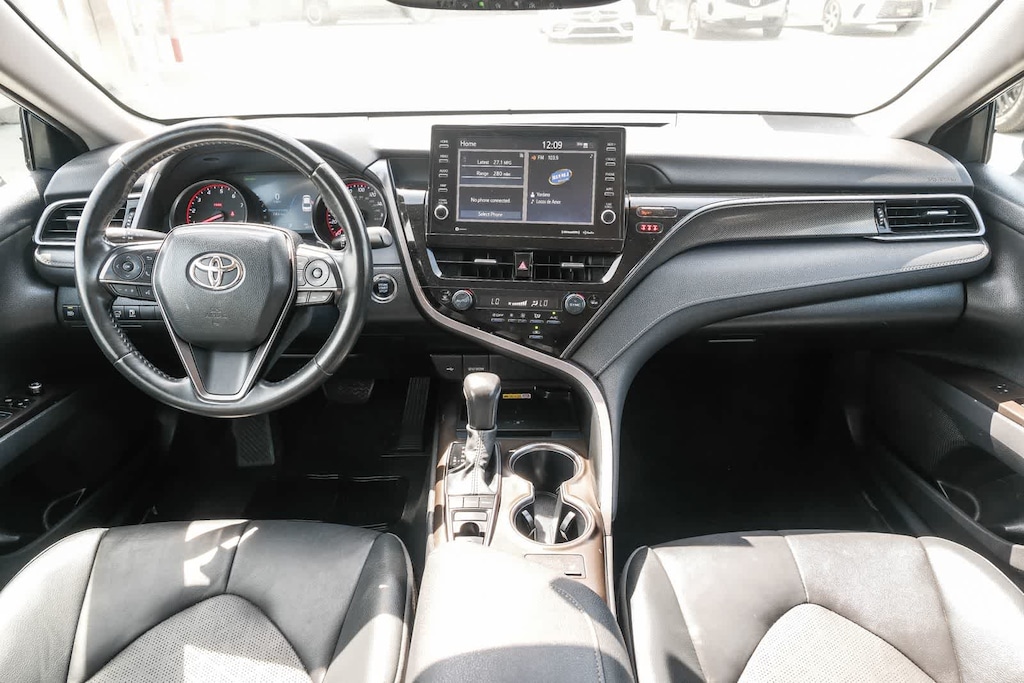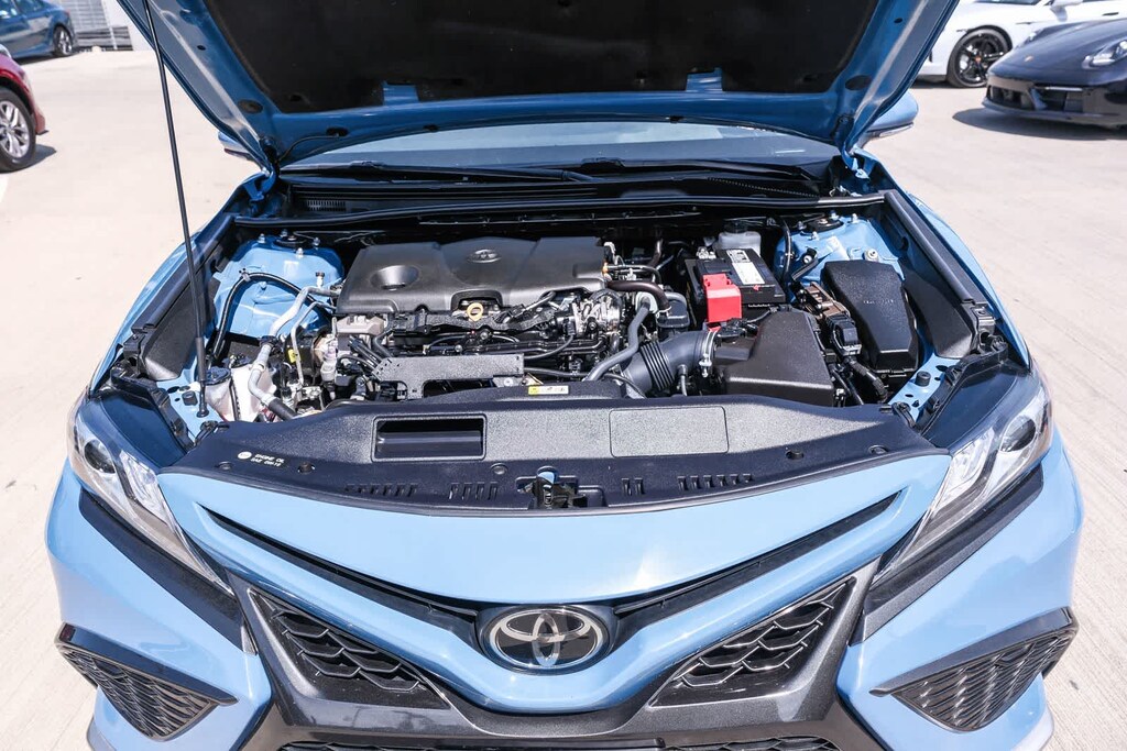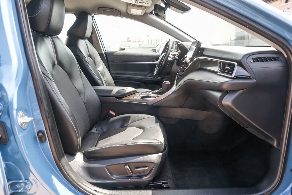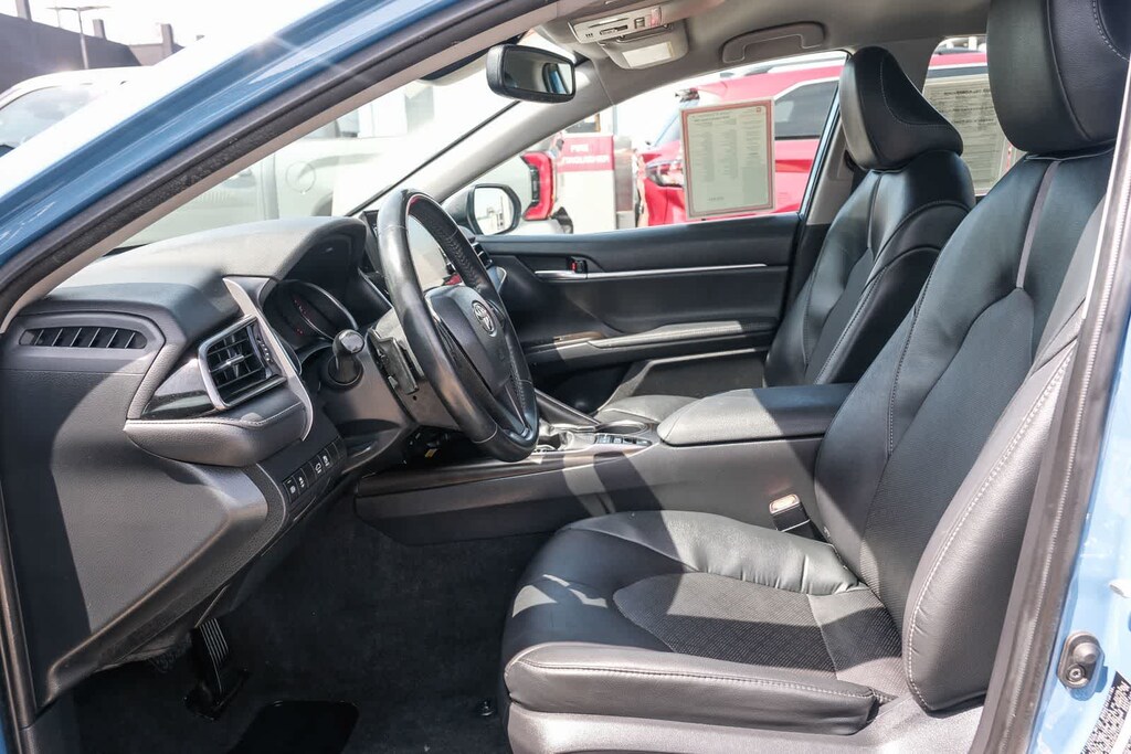 WELCOME TO TOYOTA OF DOWNTOWN LA... Certified. CARFAX One-Owner. 2023 Toyota Camry XSE Cavalry Blue FWD 8-Speed Automatic 2.5L I4 DOHC 16V Black w/Perforated Leather Seat Trim, 6 Speakers, Apple CarPlay/Android Auto, Auto-dimming Rear-View mirror, Automatic temperature control, Brake assist, Delay-off headlights, Electronic Stability Control, Exterior Parking Camera Rear, Front dual zone A/C, Fully automatic headlights, Leather steering wheel, Multi-Stage Heated Front Bucket Seats, Perforated Leather Seat Trim, Remote keyless entry, Speed control, Speed-sensing steering, Spoiler, Traction control, Turn signal indicator mirrors, Wheels: 8.0J x 19 Alloy. 27/38 City/Highway MPG