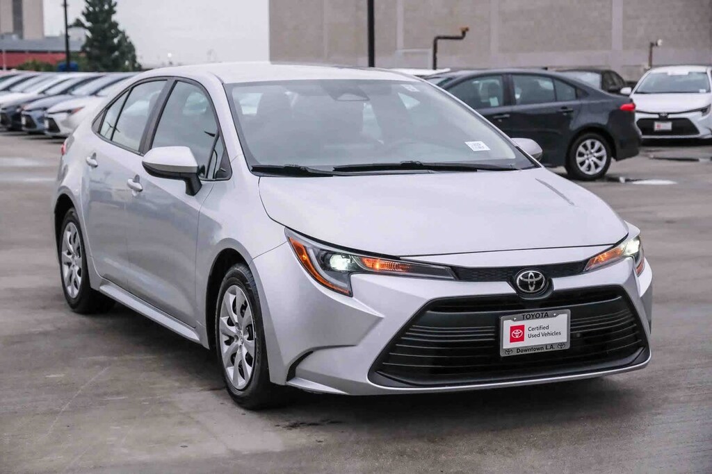 WELCOME TO TOYOTA OF DOWNTOWN LA... Certified. CARFAX One-Owner. 2023 Toyota Corolla LE Classic Silver Metallic FWD CVT 2.0L I4 DOHC 16V 6 Speakers, Automatic temperature control, Brake assist, Delay-off headlights, Electronic Stability Control, Exterior Parking Camera Rear, Fully automatic headlights, Illuminated entry, Premium Fabric Seat Trim, Radio: 8 Toyota Audio Multimedia, Rear window defroster, Remote keyless entry, Speed control, Split folding rear seat, Steering wheel mounted audio controls, Traction control, Wheels: 16 Wide Vent Steel. 32/41 City/Highway MPG