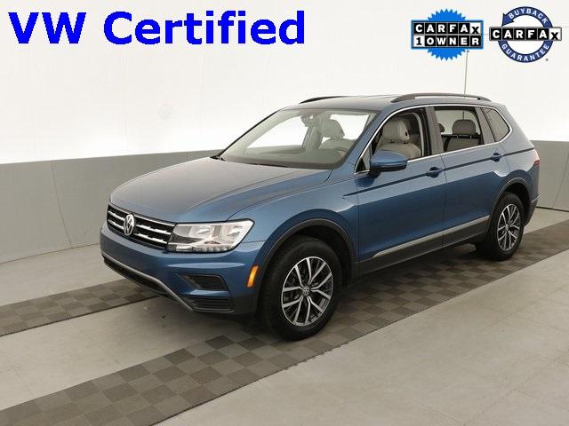 CARFAX One-Owner. 2020 Silk Blue Metallic Volkswagen Tiguan 2.0T SE 4Motion AWD 8-Speed Automatic with Tiptronic 2.0L TSI DOHC **HEATED SEATS**, **LEATHER**, **KEYLESS ENTRY**, **Bluetooth®**, **FUEL EFFICIENT**, **CARFAX ONE OWNER**, **GREAT FUEL ECONOMY**, **TONS OF CARGO ROOM**, **LOCAL TRADE**, **CLEAN CARFAX**, **REAR BACK UP CAMERA**, **PASSED 150 POINT INSPECTION**, **COMPLETELY DETAILED AND SANITIZED**, **LANE ASSIST/SIDE ASSIST**, **APPLE CAR PLAY**, Hassle-Free Pricing, Available Curbside Delivery, Shop Online or in our State of the Art Showroom, Tiguan 2.0T SE 4Motion, 4D Sport Utility, 2.0L TSI DOHC, 8-Speed Automatic with Tiptronic, AWD, Silk Blue Metallic, Storm Gray w/Perforated V-Tex Leatherette Seating Surfaces, 2-Row Rubber Monster Mats w/Logo Kit (Set of 4), Heavy Duty Trunk Liner w/VW CarGo Blocks, Roadside Assistance Kit.