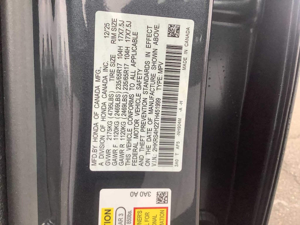 - Rear tires: 235/65HR17.0