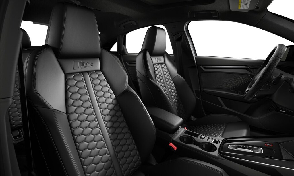 CARBON PACKAGE Carbon Side Sill Inlays & Front Air Inlets, Carbon Rear Spoiler, Wheels: 19 10-Cross-Spoke Design, dark matte gray finish, Carbon Mirror Housings, RS TECHNOLOGY PACKAGE Audi MMI Navigation Plus, Audi Connect NAV & PLUS, limited time subscription, acceptance of terms required, Traffic Sign Recognition, Head-Up Display, AUDI GUARD ALL-WEATHER MATS front and rear set of 4 black rubber mats, Front set features RS3 logo. MP3 Player, Keyless Entry, Child Safety Locks, Steering Wheel Controls, Heated Mirrors.