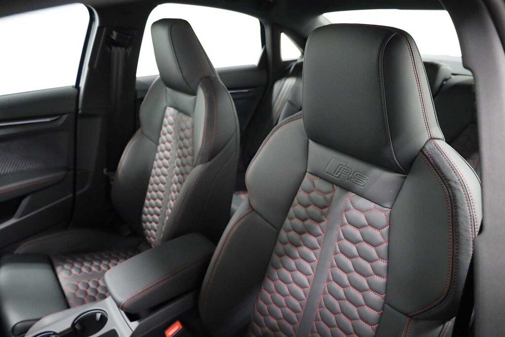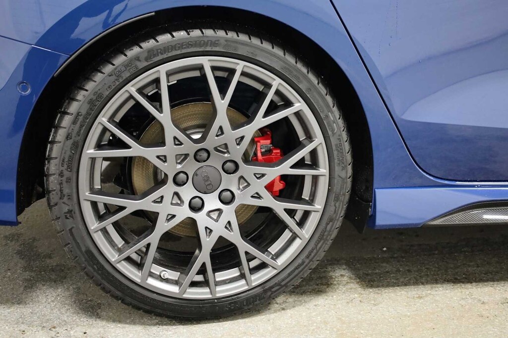 CARBON PACKAGE 19 10-Cross-Spoke Design Wheels w/Dark Gray Matte Finish, Carbon Side Sill Inlays & Front Air Inlets, Carbon Rear Spoiler, Carbon Mirror Housings, Black Wheel Center Caps, AUDI GUARD ALL-WEATHER MATS front and rear set of black rubber mats (4), Front set features RS3 logo.