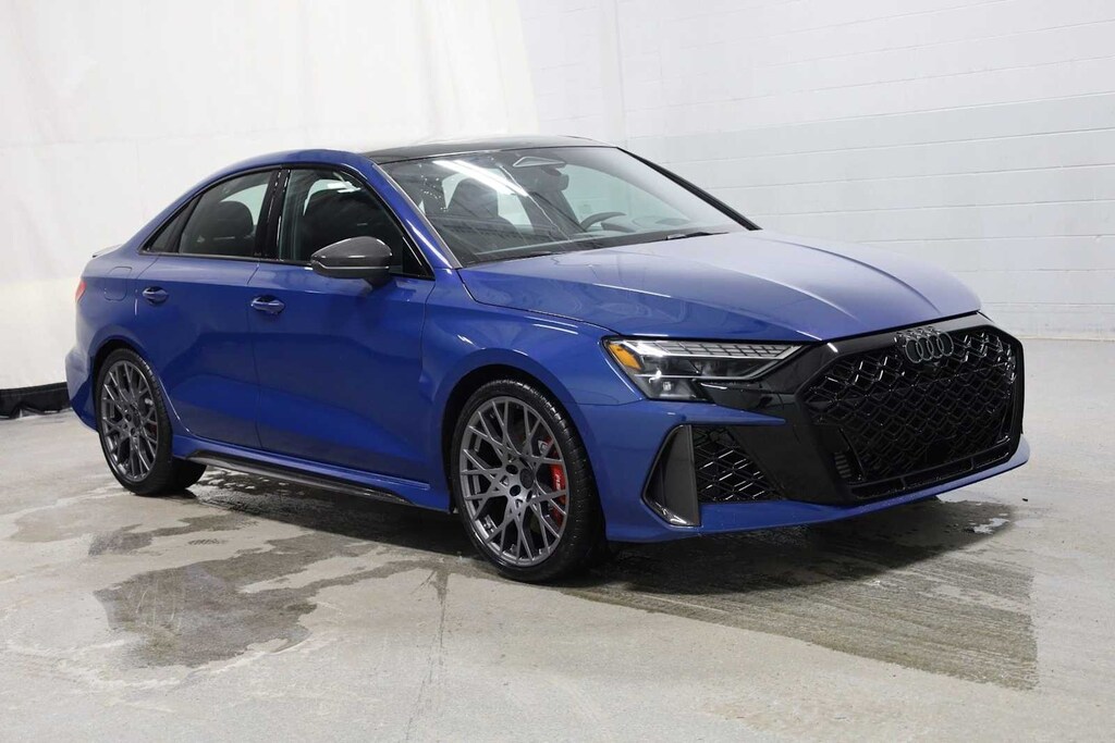 Leather Seats, Navigation, Sunroof, All Wheel Drive, Rear Air. Audi RS 3 with Ascari Blue metallic exterior and Black with red stitching interior features a 5 Cylinder Engine with 394 HP at 5600 RPM*.