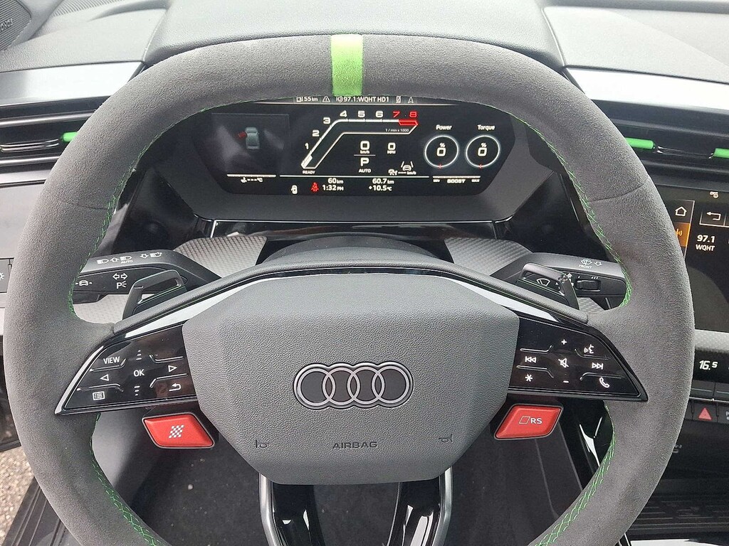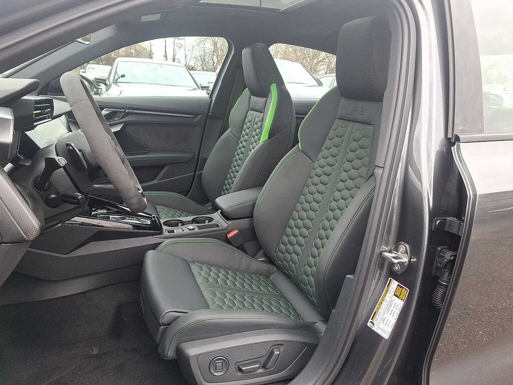 Leather Seats, Navigation, Sunroof, All Wheel Drive, Rear Air, Heated Driver Seat, Back-Up Camera, Turbocharged, Premium Sound System, Satellite Radio, iPod/MP3 Input, Onboard Communications System, Aluminum Wheels, Keyless Start, Dual Zone A/C. Audi RS 3 with Daytona Gray pearl effect exterior and Black with Micromata Green stitching interior features a 5 Cylinder Engine with 394 HP at 5600 RPM*. Rear Spoiler, MP3 Player, Keyless Entry, Child Safety Locks, Steering Wheel Controls.