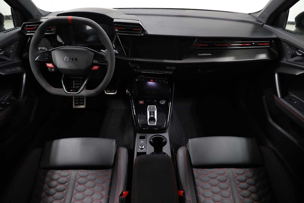 Leather Seats, Navigation, Sunroof, All Wheel Drive, Rear Air. Audi RS 3 with Daytona Gray pearl effect exterior and Black with red stitching interior features a 5 Cylinder Engine with 394 HP at 5600 RPM*.