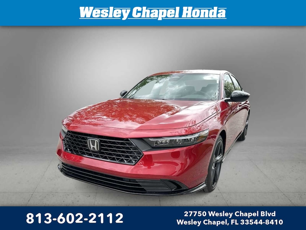 Radiant Red Metallic 2026 Honda Accord Hybrid Sport-L CVT 2.0L I4 DOHC 16V 46/41 City/Highway MPG