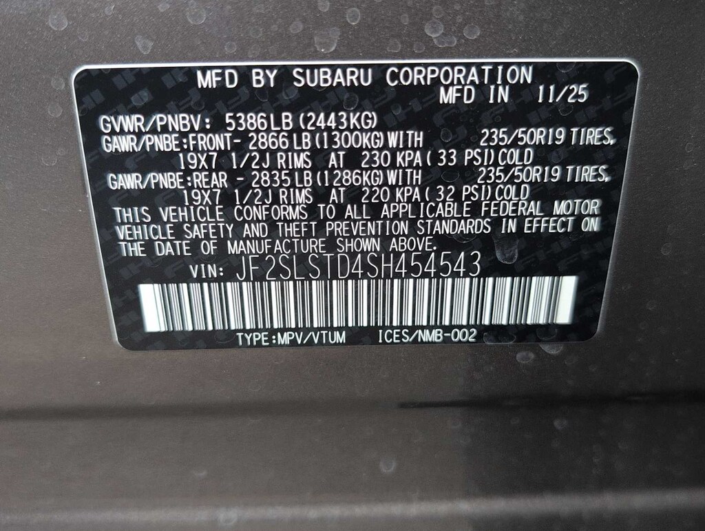 - Tracker system: MySubaru Security (6-month free trial included)