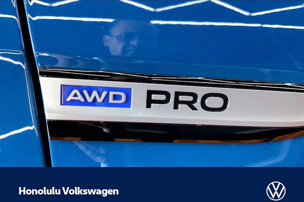 Navigation, Heated Driver Seat, Back-Up Camera. Rear Spoiler, MP3 Player, All Wheel Drive, Onboard Communications System, Aluminum Wheels, Keyless Entry, Privacy Glass. Volkswagen Pro with Mountain Lake Blue Metallic exterior and Nutmeg interior features a Electric Motor.
