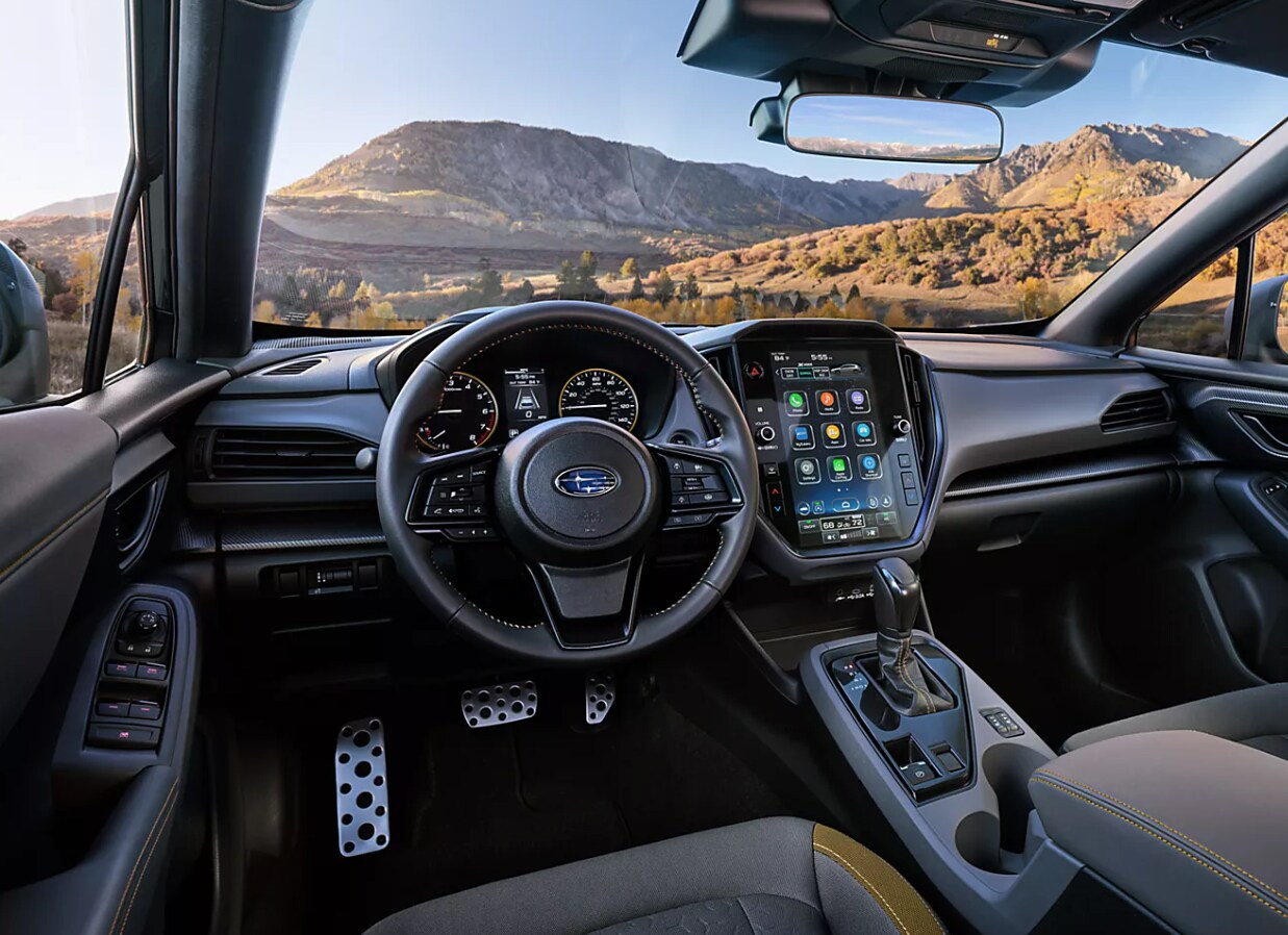For the first time, the Crosstrek offers Apple CarPlay and Android Auto as standard and while the base model comes with a 7-inch infotainment touchscreen, higher trim versions include a big 11.6-inch screen to keep you connected. Subaru's latest suite of EyeSight driver assist features include automated emergency braking, lane departure warning with lane keep assist, and adaptive cruise control all as standard. The system assesses traffic around the vehicle and includes automatic pre-collision braking (a new feature for 2024). Blind-spot detection with lane change assist is available on the Premium and Sport trim models and is standard on the Limited version.
