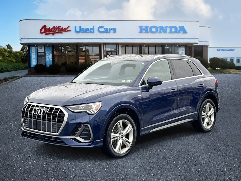 Baierl Honda is very proud to offer this great 2021 Audi Q3 in Blue Metallic. This vehicle has been inspected by our award winning service team and comes with the following features; 60 Day / 3,000 mile Limited Warranty, Q3 Premium Plus S Line quattro, 4D Sport Utility, 2.0L 4-Cylinder TFSI, 8-Speed Automatic with Tiptronic, quattro, Blue Metallic, Brown Leather.