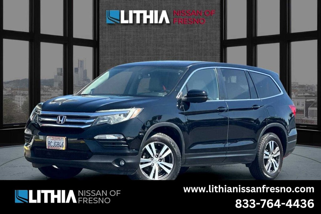 Clean CARFAX. 2017 Honda Pilot EX-L 3.5L V6 24V SOHC i-VTEC 6-Speed Automatic FWD 18 Alloy Wheels, 3rd row seats: split-bench, 4-Wheel Disc Brakes, 4.25 Axle Ratio, 7 Speakers, ABS brakes, Air Conditioning, Alloy wheels, AM/FM radio: SiriusXM, Apple CarPlay/Android Auto, Auto-dimming Rear-View mirror, Automatic temperature control, Brake assist, Bumpers: body-color, Compass, Delay-off headlights, Driver door bin, Driver vanity mirror, Dual front impact airbags, Dual front side impact airbags, Electronic Stability Control, Emergency communication system: HondaLink Assist, Exterior Parking Camera Rear, Four wheel independent suspension, Front anti-roll bar, Front Bucket Seats, Front Center Armrest, Front dual zone A/C, Front fog lights, Front reading lights, Fully automatic headlights, Garage door transmitter: HomeLink, Heated Front Bucket Seats, Heated front seats, Illuminated entry, Leather Shift Knob, Leather-Trimmed Seats, Low tire pressure warning, Occupant sensing airbag, Outside temperature display, Overhead airbag, Overhead console, Panic alarm, Passenger door bin, Passenger vanity mirror, Power door mirrors, Power driver seat, Power Liftgate, Power moonroof, Power passenger seat, Power steering, Power windows, Radio data system, Radio: AM/FM Audio System, Rear air conditioning, Rear anti-roll bar, Rear reading lights, Rear seat center armrest, Rear window defroster, Rear window wiper, Remote keyless entry, Security system, SiriusXM Radio, Speed control, Speed-sensing steering, Speed-Sensitive Wipers, Split folding rear seat, Spoiler, Steering wheel mounted audio controls, Tachometer, Telescoping steering wheel, Tilt steering wheel, Traction control, Trip computer, Variably intermittent wipers, Manager??s Special, Service Records Available, ** Fresh Oil Change, ** Smog Inspection Performed, ** Engine Air Filter Replaced, ** In Cabin Air Filter Replaced, Interior and Exterior Professionally Detailed for Delivery, Great Value, LITHIAS 60 DAY 3000 MILE LIMITED WARRANTY APPLIES, Certified by Carfax - No Accidents, Prior Lease Vehicle, ** BACK UP CAMERA, ** BLUETOOTH, HANDS-FREE, ** KEYLESS ENTRY, ** REARVIEW CAMERA, ** SERVICE RECORDS AVAILABLE, ** STEERING WHEEL CONTROLS, PRE OWNED, USED CAR, MANAGERS SPECIAL, SERVICE RECORDS AVAILABLE.