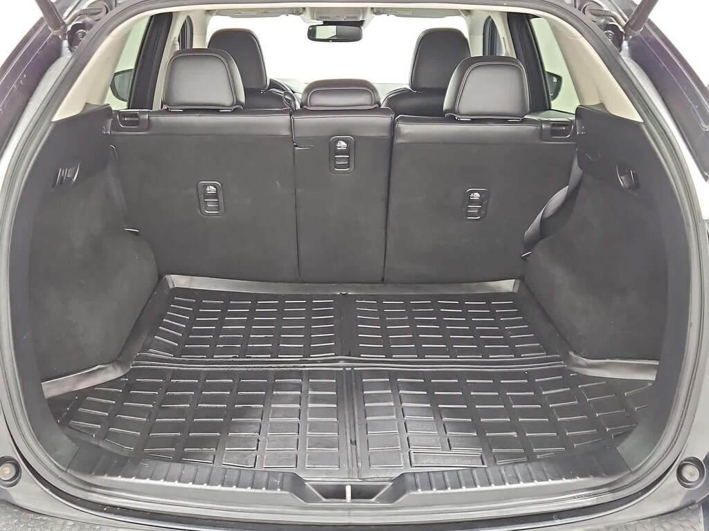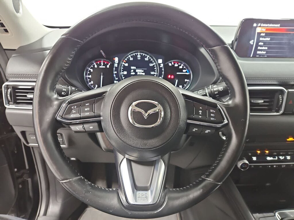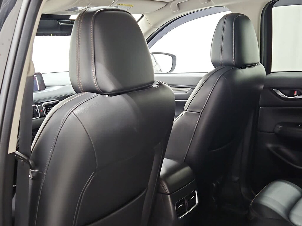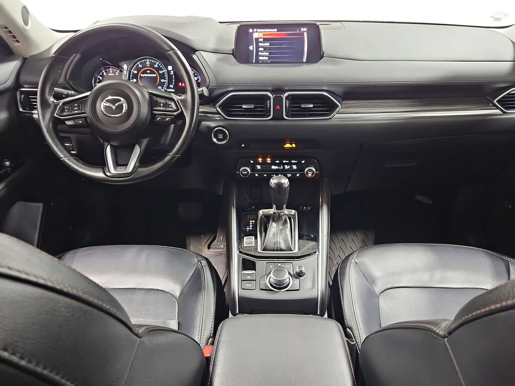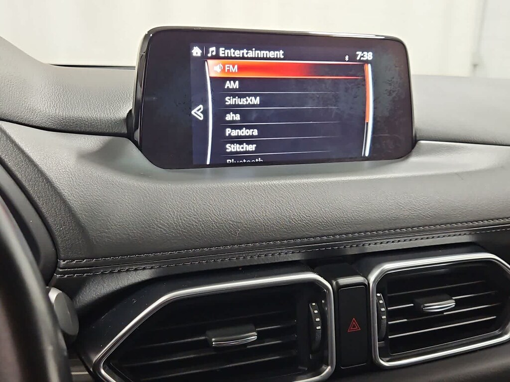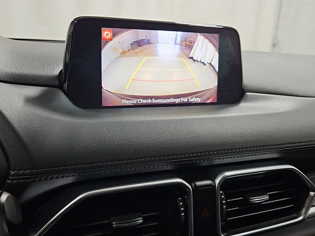 CX-5 Grand Touring is nicely equipped with GT Premium Package (Active Driving Display (Windshield Type), Automatic Power Folding Side Mirrors, Heated Rear Seats, Heated Steering Wheel, Ventilated Front Seats, and Windshield Wiper De-Icer), 10 Speakers, 4-Wheel Disc Brakes, 4.624 Axle Ratio, ABS brakes, Air Conditioning, Alloy wheels, AM/FM radio: SiriusXM, AppLink/Apple CarPlay and Android Auto, Auto High-beam Headlights, Auto-dimming Rear-View mirror, Automatic temperature control, Bose 10-Speaker Audio Sound System, Brake assist, Bumpers: body-color, Delay-off headlights, Driver door bin, Driver vanity mirror, Dual front impact airbags, Dual front side impact airbags, Electronic Stability Control, Emergency communication system, Exterior Parking Camera Rear, Four wheel independent suspension, Front anti-roll bar, Front Bucket Seats, Front Center Armrest, Front dual zone A/C, Front fog lights, Front reading lights, Fully automatic headlights, Garage door transmitter: HomeLink, Heated door mirrors, Heated front seats, Heated Front Sport Seats, Illuminated entry, Lane Departure Warning System, Leather Seat Trim, Leather Shift Knob, Low tire pressure warning, Memory seat, Occupant sensing airbag, Outside temperature display, Overhead airbag, Overhead console, Panic alarm, Passenger door bin, Passenger vanity mirror, Power door mirrors, Power driver seat, Power Liftgate, Power moonroof, Power passenger seat, Power steering, Power windows, Radio data system, Radio: AM/FM/HD Audio System, Rain sensing wipers, Rear anti-roll bar, Rear reading lights, Rear seat center armrest, Rear window defroster, Rear window wiper, Remote keyless entry, Speed control, Speed-sensing steering, Split folding rear seat, Spoiler, Steering wheel mounted audio controls, Tachometer, Telescoping steering wheel, Tilt steering wheel, Traction control, Trip computer, Turn signal indicator mirrors, Variably intermittent wipers, and Wheels: 19 x 7J Aluminum Alloy w/Silver Finish.