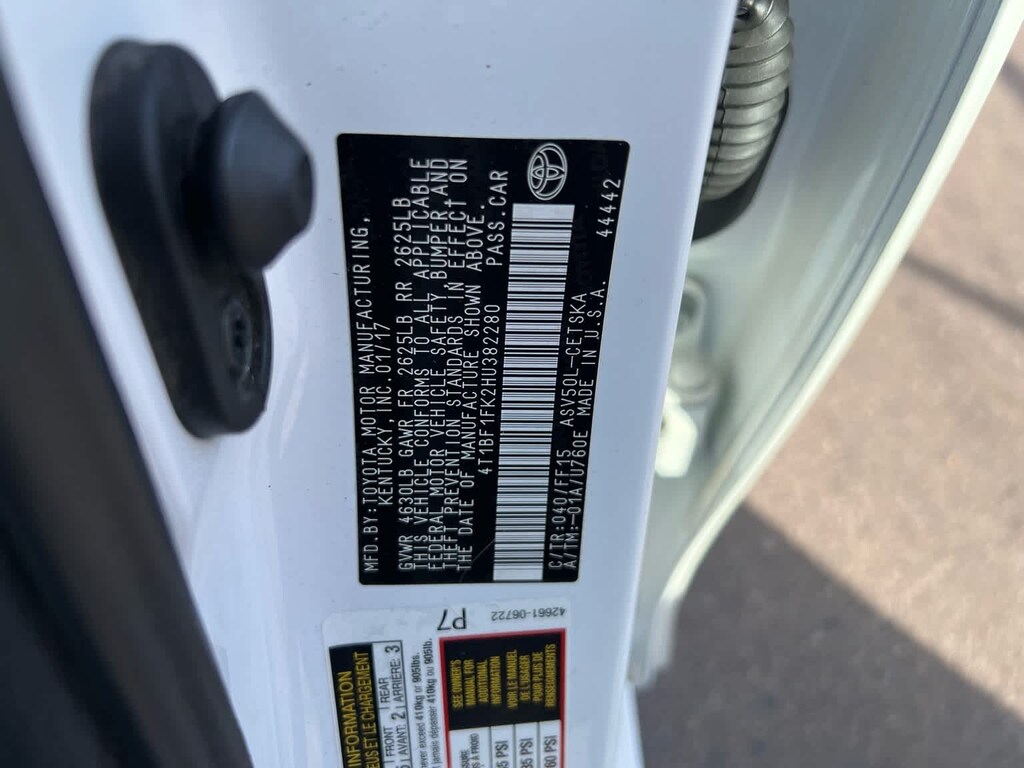 Super White 2017 Toyota Camry SE FWD 6-Speed Automatic 2.5L I4 SMPI DOHC Ash Cloth, ABS brakes, Alloy wheels, Electronic Stability Control, Heated door mirrors, Illuminated entry, Low tire pressure warning, Remote keyless entry, Traction control.