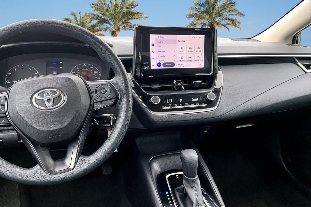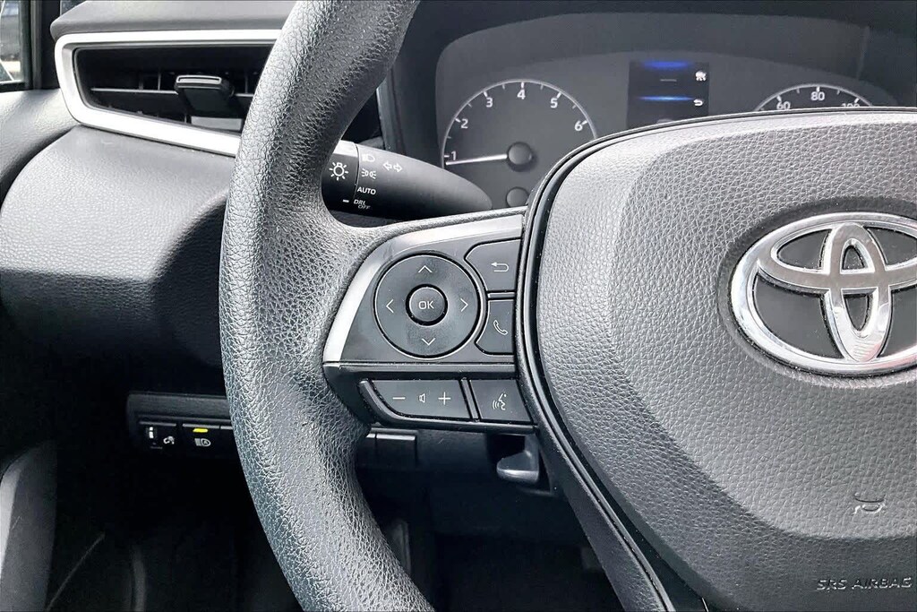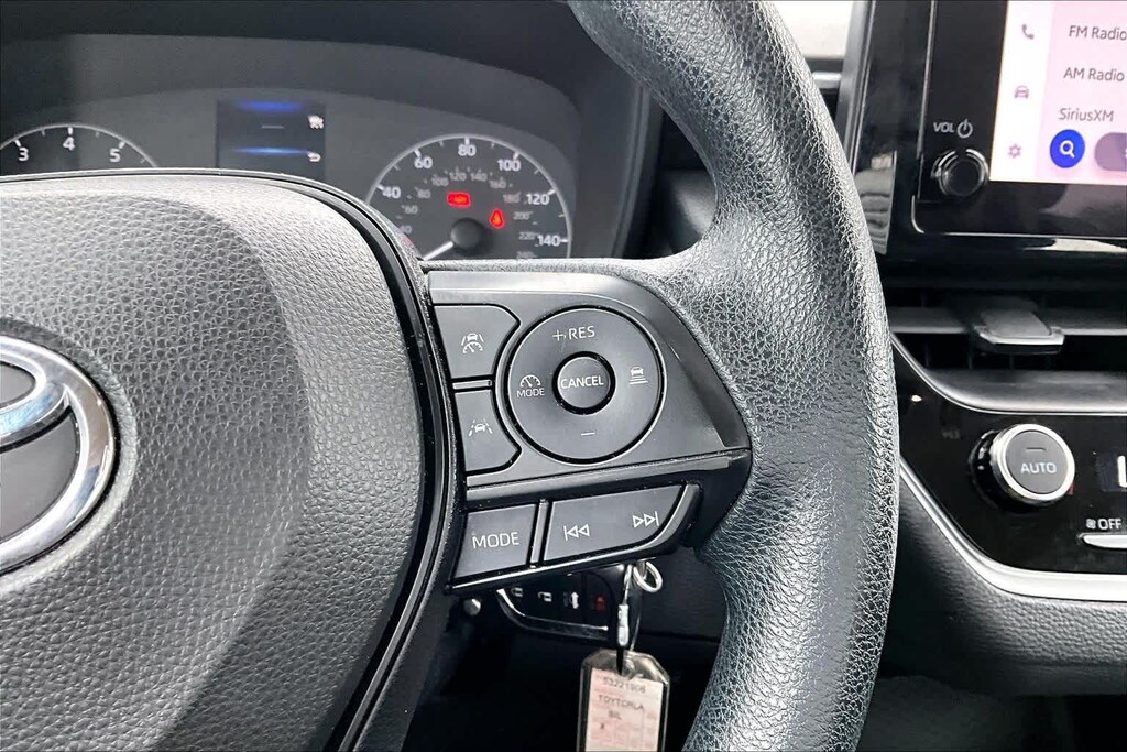 FRESH OIL CHANGE, 4-Wheel Disc Brakes, 6 Speakers, ABS brakes, Air Conditioning, AM/FM radio: SiriusXM, Auto High-beam Headlights, Automatic temperature control, Brake assist, Bumpers: body-color, Delay-off headlights, Driver door bin, Driver vanity mirror, Dual front impact airbags, Dual front side impact airbags, Electronic Stability Control, Emergency communication system: Safety Connect (up to 10-year trial subscription), Exterior Parking Camera Rear, Front anti-roll bar, Front Bucket Seats, Front Center Armrest, Front reading lights, Front wheel independent suspension, Fully automatic headlights, Illuminated entry, Knee airbag, Low tire pressure warning, Occupant sensing airbag, Outside temperature display, Overhead airbag, Panic alarm, Passenger door bin, Passenger vanity mirror, Power door mirrors, Power steering, Power windows, Premium Fabric Seat Trim, Radio data system, Radio: 8 Toyota Audio Multimedia, Rear anti-roll bar, Rear seat center armrest, Rear side impact airbag, Rear window defroster, Remote keyless entry, Speed control, Split folding rear seat, Steering wheel mounted audio controls, Tachometer, Telescoping steering wheel, Tilt steering wheel, Traction control, Trip computer, Variably intermittent wipers, Wheels: 16 Wide Vent Steel. 32/41 City/Highway MPG Silver 2023 Toyota Corolla LE FWD CVT 2.0L I4 DOHC 16V