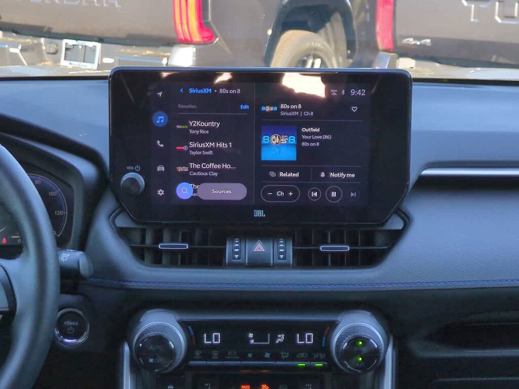 The XSE trim level elevates the RAV4 Hybrid with a host of premium features, including the Advanced Technology Package, which adds a large 12.3 multi-information display, Panoramic View Monitor, and a suite of advanced safety and convenience technologies. The Weather Package further enhances the experience with a heated leather-wrapped steering wheel, while the JBL Audio System provides a premium listening experience.